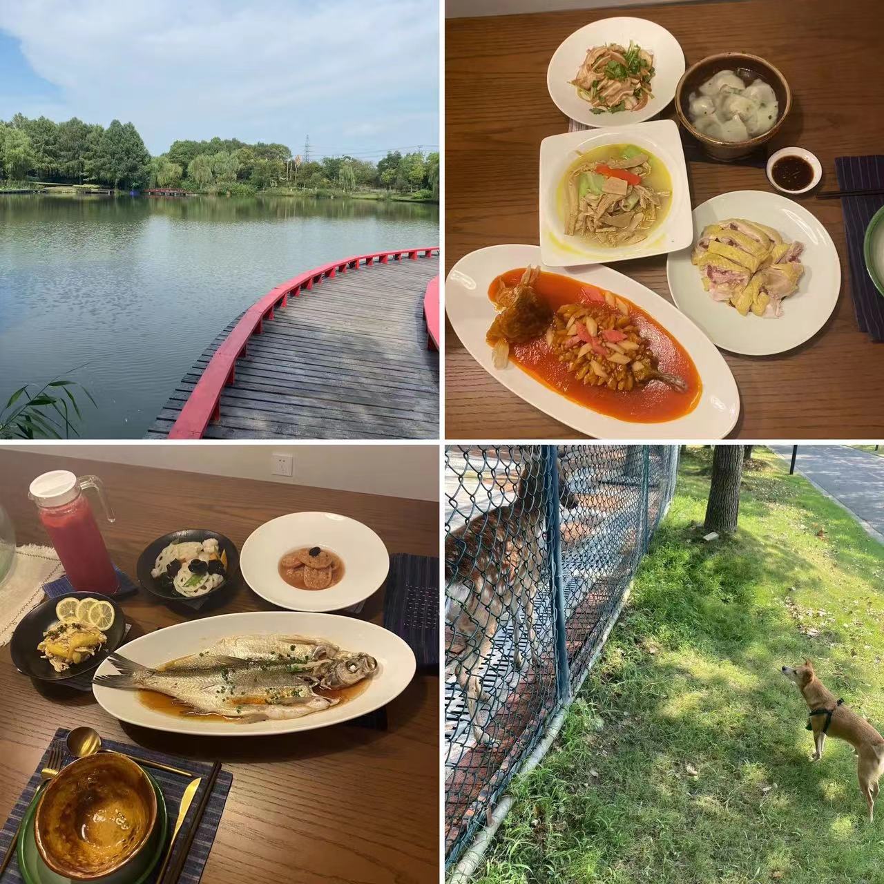 Features of the area include a variety of courtyards and gardens, an area for picnics, playgrounds for children, a mini-zoo featuring peacocks and deer, a farm, a large field for the dog to run around, and a restaurant featuring dishes with ingredients picked fresh from the farm. The grounds are well-maintained and clean and we seemed to encounter more groundskeepers than actual guests. Dogs are allowed in most of the outdoor areas other than the restaurant. If your dog has separation anxiety like mine, you can opt for delivery for an additional 15% service charge on top of an already expensive (but excellent) dishes that range from 50-500 RMB. I wound up paying 500 RMB for each meal pictured. The hotel is in a remote location and doesn’t allow food delivery, so unless you have a car, you’re basically stuck with eating there.
